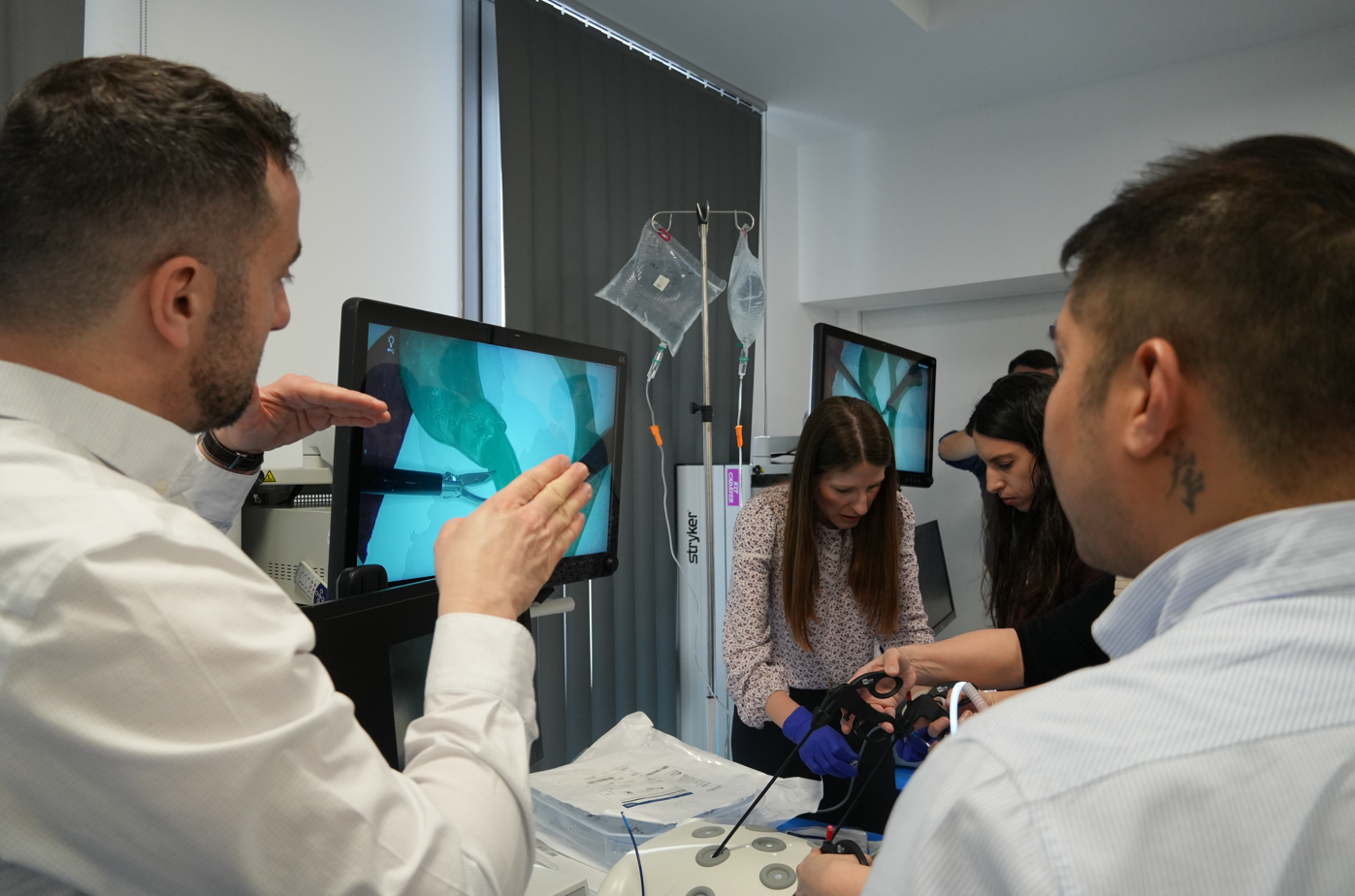 Por la tarde, los asistentes participaron en una sesión práctica de simulación quirúrgica con pelvitrainer, que permitió entrenar las habilidades técnicas con modelos experimentales en un entorno controlado.