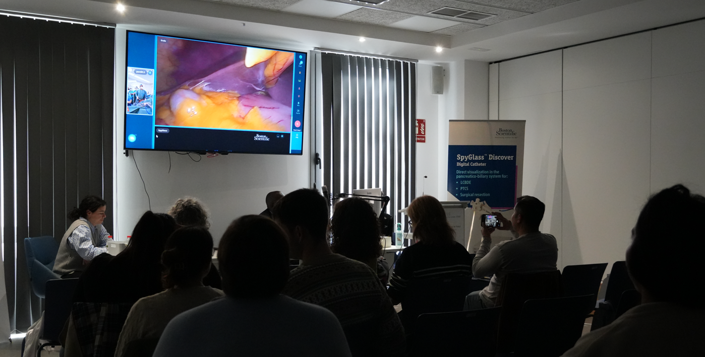 Durante la primera jornada, celebrada el jueves por la mañana, se impartieron diversas ponencias centradas en aspectos clave del tratamiento laparoscópico en un solo tiempo de la coledocolitiasis, como el diagnóstico preoperatorio e intraoperatorio, las consideraciones anestésicas, las diferentes técnicas quirúrgicas y los procedimientos de enfermería asociados. La sesión también incluyó una discusión interactiva de casos clínicos entre los participantes.