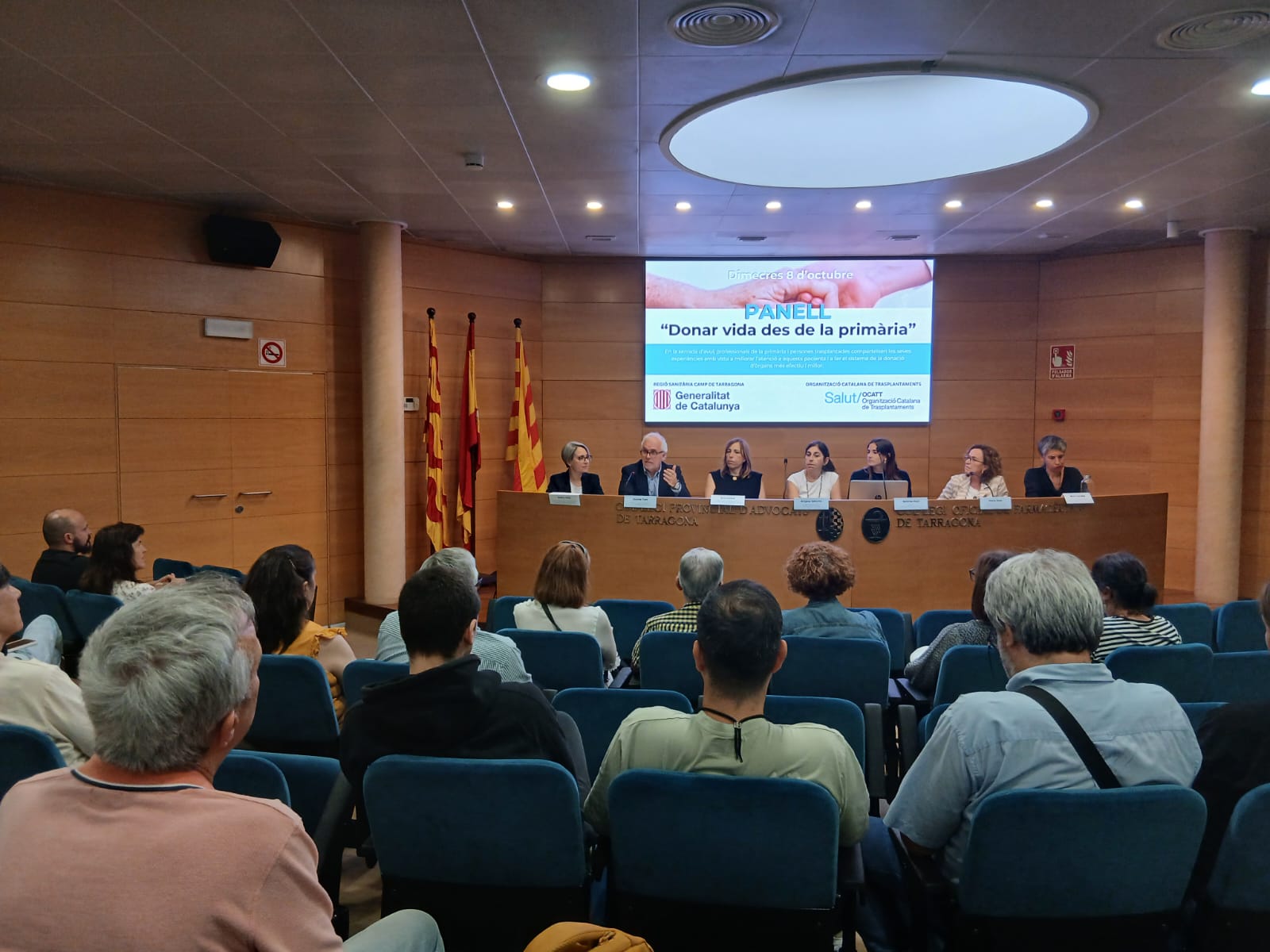 La xerrada va ser organitzada per la Regió Sanitària Camp de Tarragona i l’Organització Catalana de Trasplantaments (OCATT). Hi van participar com a ponents Àngela Sancho i Andrea Ruiz, metgessa i infermera de l’Equip d’Atenció Primària (EAP) Muralles, respectivament; Maria Bodí, cap del Servei de Medicina Intensiva i coordinadora de trasplantaments de l’Hospital Universitari Joan XXIII de Tarragona; Núria Estrada, psicòloga clínica de l’Institut Pere Mata i del Servei d’Interconsulta en Salut Mental de l’Hospital Joan XXIII; Eva Vallvé, trasplantada de fetge i membre de l’Associació de Malalts i Trasplantats Hepàtics de Catalunya (AMTHC), i Jaume Tort, director de l’OCATT. La gerenta de la Regió Sanitària Camp de Tarragona i directora dels serveis territorials de Salut, Marta Milà, va ser la responsable d’encetar la xerrada amb unes paraules de benvinguda.
