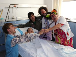 Acompanyats pels pallassos de Pallapupas, que col·laboren amb l’Hospital Joan XXIII, cada dimarts, amb l’objectiu de treure un somriure als nens hospitalitzats i a les seves famílies.
