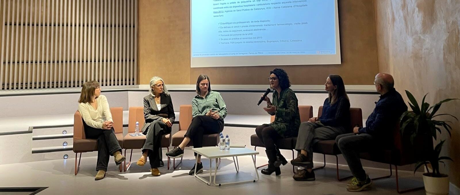 Noemí Vivas (psicòloga del CASD), Ester Granado (infermera de l’EAP Horts de Miró), Míriam Leiva (llevadora de l’ASSIR Reus – Priorat) i Elisa Vaz i Rebeca Pereira (metgessa i infermera de l’EAPP Mas d’Enric, respectivament) han exposat les iniciatives i les bones pràctiques que s’estan fent des de l’Atenció Primària de l’ICS Camp de Tarragona i el CASD per contribuir en la deshabituació tabàquica dels usuaris dels diferents centres i han posat en valor la importància d’un enfocament integral i multidisciplinari.
